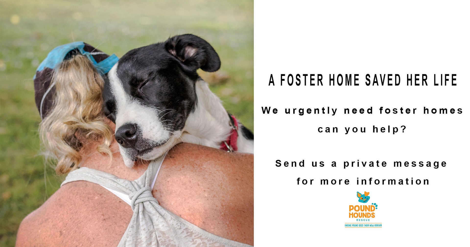 We also have a facebook group that is only for our foster parents. We post up Poundies needing foster homes in there as well, you can put your hand up there too if you think you'd like to take them on.