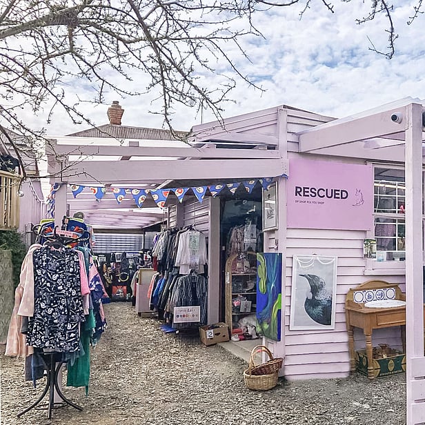 Welcome to RESCUED Op Shop! Just minutes from Cambridge's town centre, pop in and discover our constantly changing collection of quality clothing, curated finds, unexpected gems, and know every purchase helps local rescue dogs.
