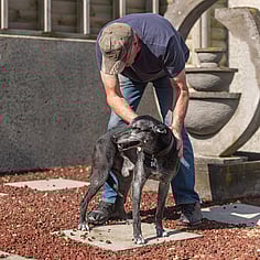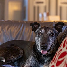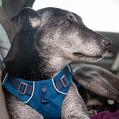 Ideal Home: Roo is just looking for a home to retire in. He's had a hard life and it shows in how sore he gets but it doesn't stop him trying to play with other dogs or do the odd zoomie around the section. He's always got a happy dance for you when you come home and has done remarkably well on his Berensa injections, giving him a new lease on life and significantly reducing his pain levels. A calm and quiet home without children (or with kids over 14) would be best as he's just looking to lead a comfortable and relaxed life. He's not a fan of anything around his neck so we use a harness when walking him. Roo is currently on foster at a lifestyle block and has been super good at staying around home and not going past the gate unless accompanied. He LOVES car rides, is incredibly loyal to his hoomans, has a good recall and loves to play in water. We have not had him around cats but he has been around cows and other dogs. He ignores the cows and he loves to play with the other dogs he's met - these have all been medium to large dogs, we do not know how he is with small dogs.