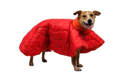 Adjustable soft stretch leg loops help keep poncho in place as dog changes sleep positions