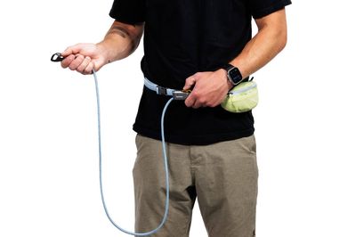 A climbing-inspired adjustable-length leash and hitching system for ultimate connection versatility on the fly – from the crag to coffee shops and the paths in between.