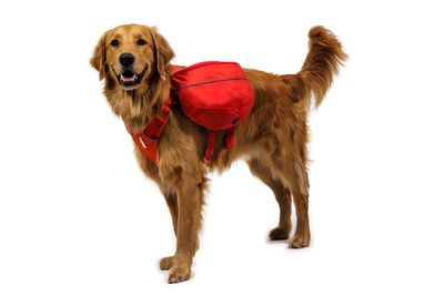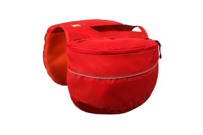 Radial cut, weight-forward saddlebags and “flopper stoppers” keep pack and contents stable against your dog