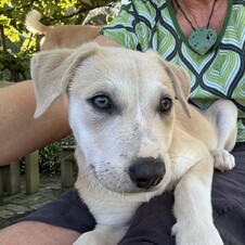 Good Habits: Crate trained, mostly house trained, pees on command, sleeps through the night, smart, loves to explore and play, affectionate, loves people, good with the cat and dogs in his foster home, learning about chooks (but interested), learning basic manners (sit etc), very food motivated