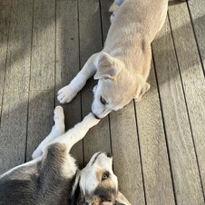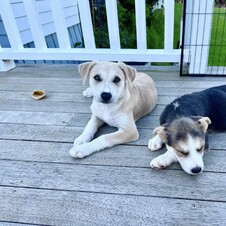 Teddy is a Husky mix so will need plenty of exercise - for his brain and for his body. He would love hoomans who will enjoy taking him on daily walks or runs, as well as adventures on the weekends when he's old enough. We think when he's old enough he will make a great running/hiking/long walks buddy and may even make an amazing dog sport kid. He'd also love another (female) dog in the home to play with and learn from, but that's not a necessity.