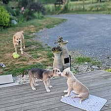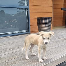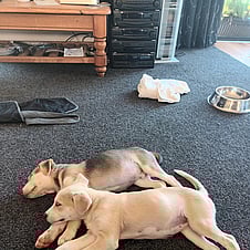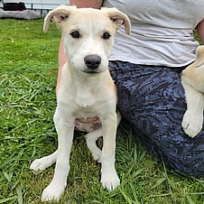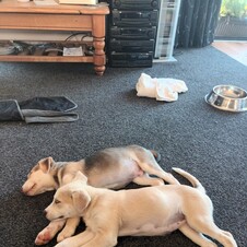 Tess and her siblings are part Husky, this is something we recommend people take into account before applying. While Tess is a sweet natured, happy and confident girl, who isn't loud or barky (just the normal puppy stuff), she will need clear and consistent rules and boundaries to make sure she learns what is ok and what is not - just like any new puppy.