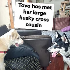 Tova is a Husky mix so will need plenty of exercise - for her brain and for her body. She would love a home with active hoomans who will enjoy taking her on daily walks or runs, as well as adventures on the weekends when she's old enough. We think when she's old enough she will make a great running/hiking/long walks buddy or even maybe a sport dog (perhaps agility, sledding, scent training etc). She'd also love another (male) dog in the home to play with and learn from, but that's not a necessity. She is currently in a foster home with two adult dogs (a Border Collie and a Husky x) and two cats (she will chase if a cat runs so dog savvy cats that stand up for themselves will be important) - her foster mum is a dog trainer too, so she's getting JUST the right start to life!