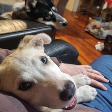 This little miss is something a bit special. She's sassy, she's playful but she has a super sweet and loving side too. She loves a good snuggle with her hooman but can happily just be in your presence and play with her toys too. True to Husky form Taffy LOVES to learn (especially if it involves food) and is SUPER smart, picking up new things quickly. But she also has a lot of Lab qualities too - in fact her foster mum reckons she's much more of a sweet natured and eager to please Lab type. This means that she will need a home where she will get the mental stimulation she needs along with clear (but kind) rules and boundaries - not just physical exercise.
