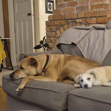Tova is a really happy, sweet natured and fun girl. She has met kids, adults, young and old and gave every new friend a full body wiggle. She would suit a home with older, playful dog savvy kids 10+ or no kids and would fit really well into any active home - busy or quiet, she's fine with either.