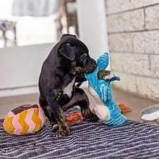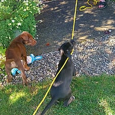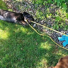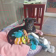 Hobbies: Naps, hanging out with her hoomans, playing with the adult dogs in her foster home, exploring the garden, playing tuggy, more naps, snuggles with her people, playing with toys