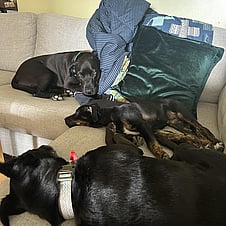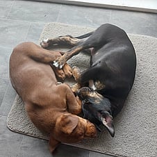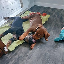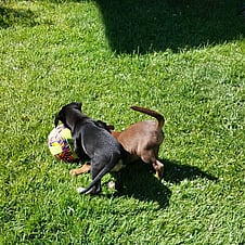 Breed: We call them Potluck Poundies, we are guessing Choc Lab x some sort of working breed in the mix?