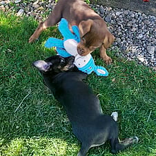 Winter loves her toys, especially her tug rope. She is currently in a foster home with adult dogs, cats, kids, chooks and sheep. This all makes her a very well socialised girl who is learning all the good "how to dog" things a wee baby should learn. She's also started working on her basic manners and has a beautiful sit. She's a very fast learner and will do anything for a yummy treat.