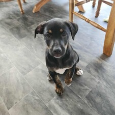 Good Habits: Crate trained, house trained, sleeps through the night, learning how to "dog" from the adult dogs in her foster home, smart, loves to explore and play, very affectionate, loves people, good with cats, dogs, learning about chooks & sheep, learning basic manners (sit etc)