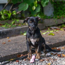 Winter loves her toys, especially her tug rope. She is currently in a foster home with adult dogs, cats, kids, chooks and sheep. This all makes her a very well socialised girl who is learning all the good "how to dog" things a wee baby should learn. She's also started working on her basic manners and has a beautiful sit. She's a very fast learner and will do anything for a yummy treat.
